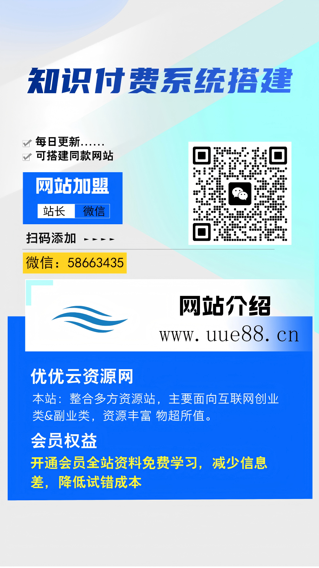 加盟优优云分享,加盟搭建同款知识付费资源网站,实现长期稳定被动收入~